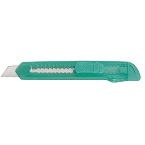 Cutter con blocco di sicurezza. Attenzione: lama molto tagliente, maneggiare con prudenza.