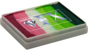 Split Cake Diamond Fx sono cialde contenenti diversi colori Diamond Fx disposti a righe, grazie ai quali con facilità si possono fare creazioni in pochi secondi. Ideale per il facepainting, truccabimbi, e in situazioni in cui si devono ottimizzare i tempi di realizzazione. L’effetto è sorprendente e di enorme impatto visivo. Si utilizzano per fare fiori, foglie, creazioni di ogni genere mettendo in pratica la tecnica one stroke. Possono essere applicati con i pennelli piatti larghi, ideali per gli split da 30 gr (Medium), e con le spugne che si adattano bene gli split da 50 gr (Big). Disponibili in una molteplicità di abbinamenti di colore, in base all’esigenza. Utilizzati dai migliori truccatori a livello professionale sia in Italia che all’estero e dispongono del doppio certificato EU ed FDA. I colori Diamond Fx necessitano di una piccola quantità di acqua e possono essere applicati sia con la spugna che con il pennello. Tutti i prodotti si possono rimuovere dal viso o dal corpo con un po’ di acqua e sapone. Tenere lontano dalla portata dei bambini di età inferiore ai 36 mesi. Conservare in luogo fresco ed asciutto, chiuso dal coperchio quando il prodotto non viene utilizzato. Tutti i cosmetici possono, in rare occasioni, causare reazioni allergiche. Questo prodotto non deve essere applicato su pelle spaccata , irritata o sensibile.